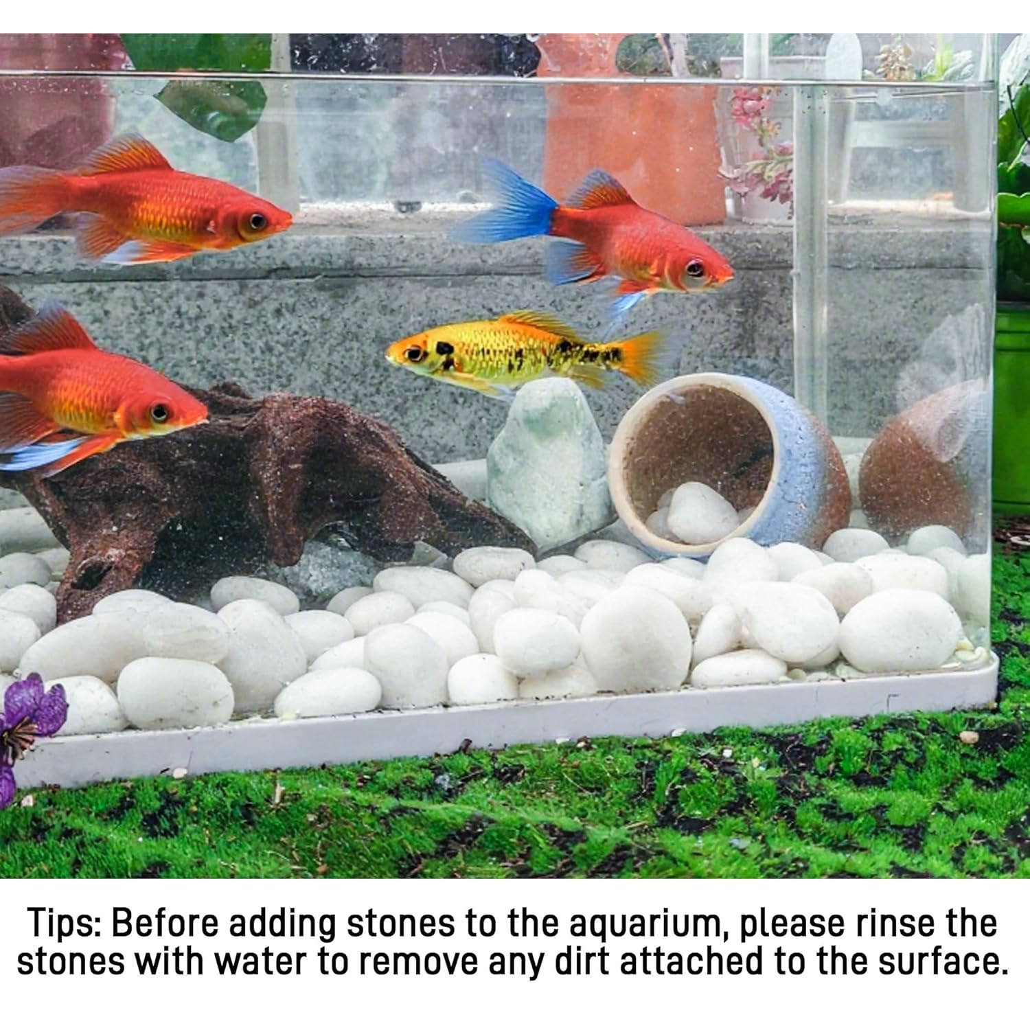 - 【45lbs White Rocks】 White rock is about 1-2 inch.These naturally smooth pebbles are not pure white, there are a few grey pebbles and yellow pebbles in it. 45lbs quantity is sufficient to decorate multiple potted plants,aquariums,or landscape projects.