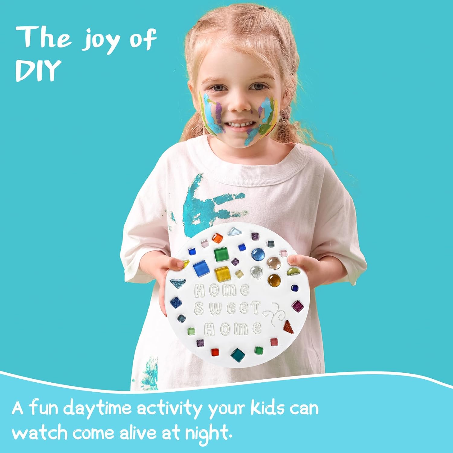 - Complete DIY Stepping Stone Kit: this comprehensive garden stepping stones kit includes 3 round plastic molds, 250g colorful mosaic tiles, and alphabet/number stamps; Everything you need to create beautiful concrete stepping stones and no concrete mix; Suitable for family crafting projects