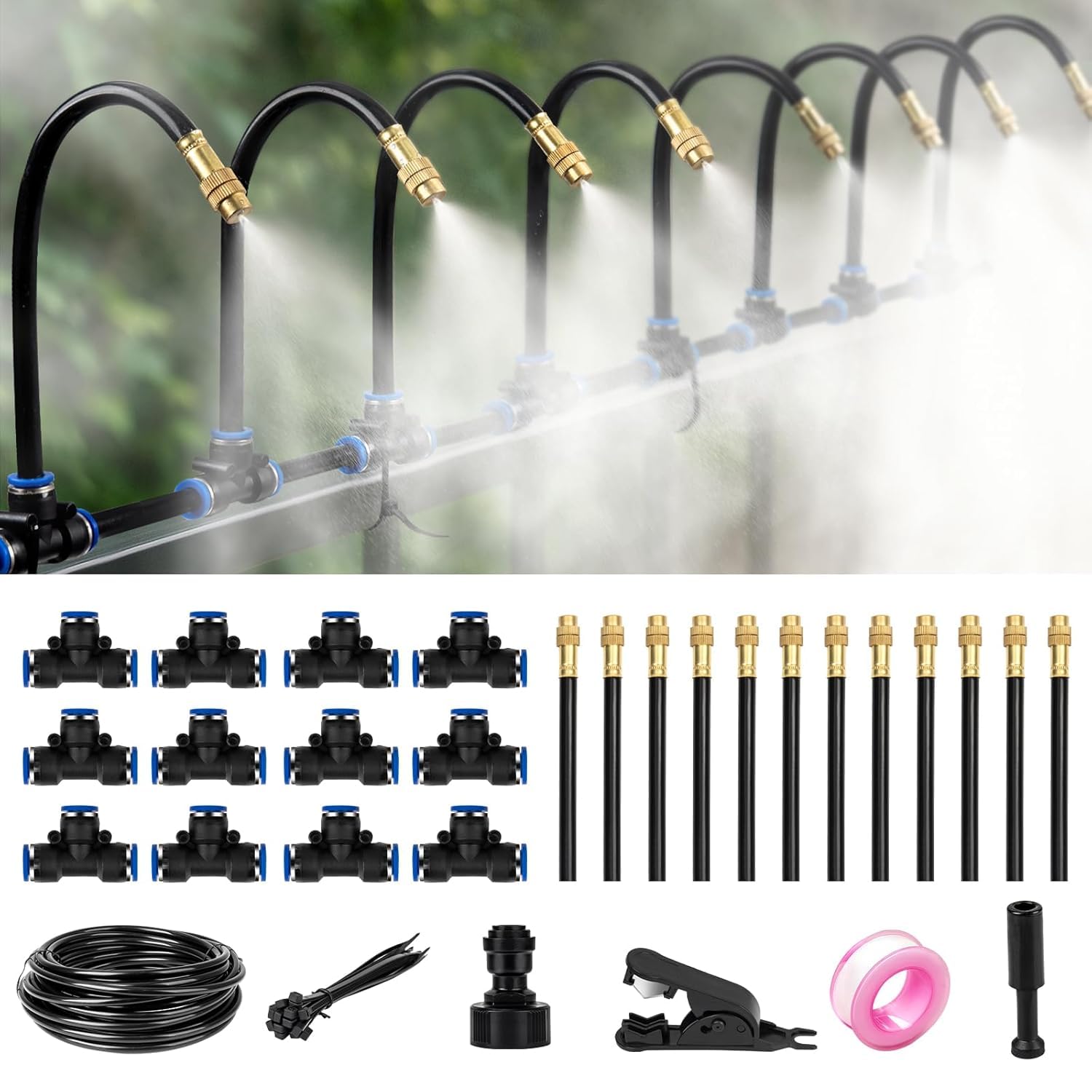 - HIGHT QUALITY MATERIAL: The irrigation systems are made of durable, high-quality materials, high temperature resistance, sturdy and durable brass nozzle, explosion-proof and rust-proof, dense atomization, the greater the water volume, the better the effect
