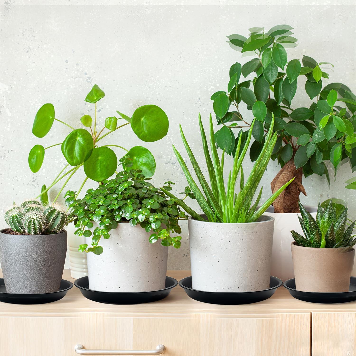 - ăHeavy Duty & Long-Lastingă Designed with a thickened base and walls for added durability. These saucers hold heavier ceramic or clay pots without bending, and can also be used to hold pebbles for decoration or humidity, ideal for both indoor and outdoor use year-round.