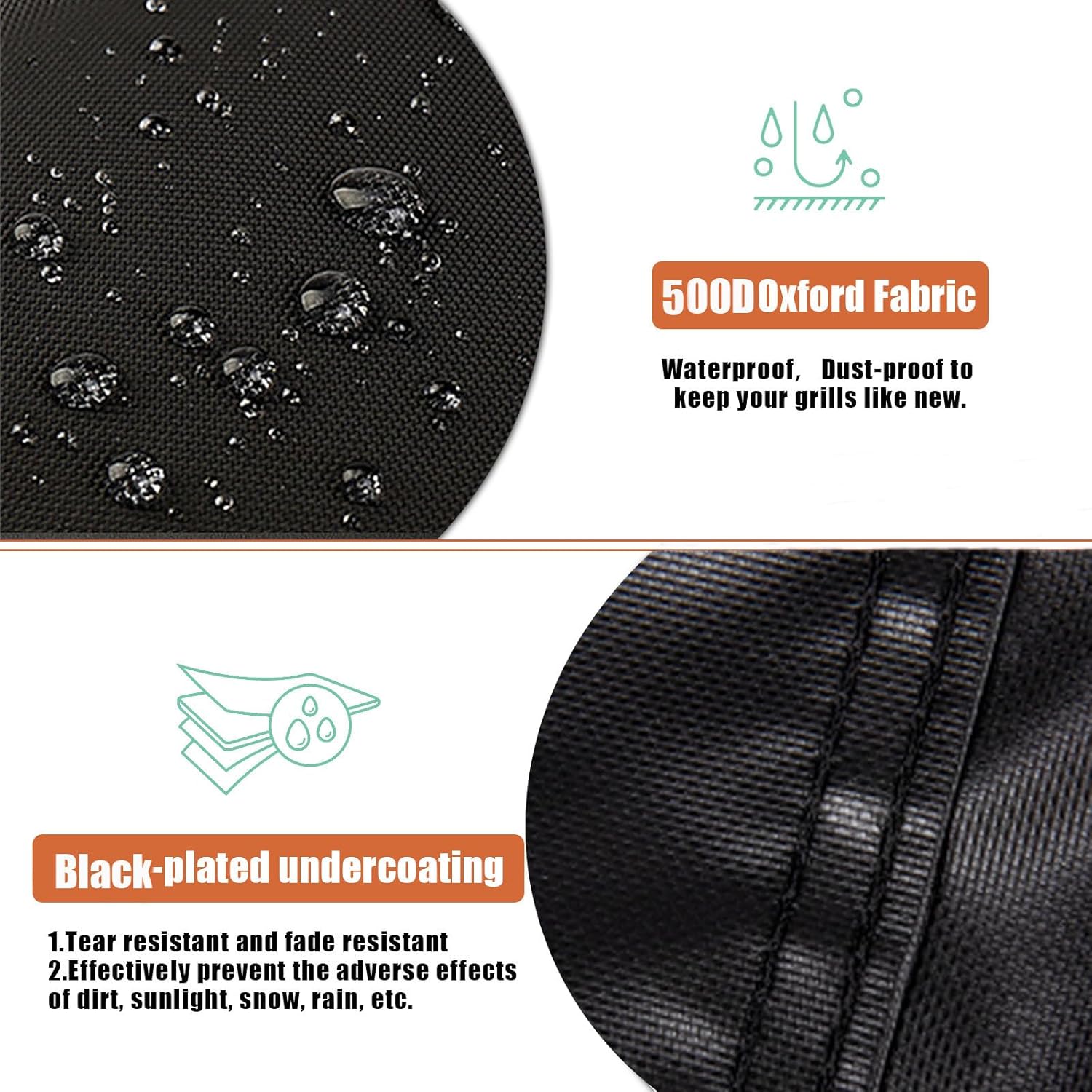 - Waterproof & Rainproof: Made of high-density 500D Oxford cloth with PVC coating treatment, propane grill cover provides excellent waterproof performance, effectively blocking rainwater penetration, keeping the inside of the grill clean and ready for your next delicious barbecue