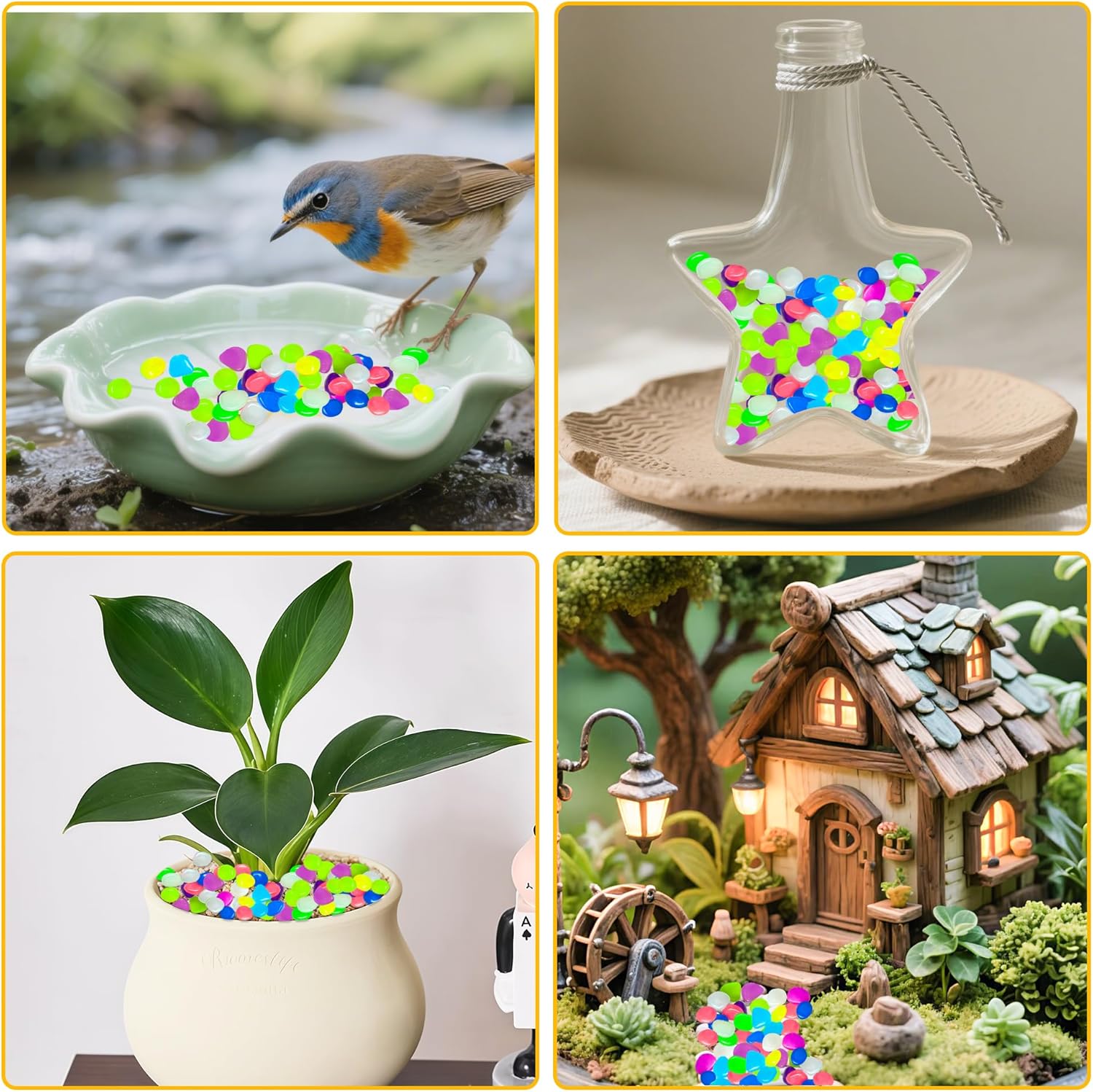 - Various Uses: These glowing pebbles are ideal as fish tank rocks, aquarium gravel, fairy garden decorations, betta fish tank accessories, turtle tank accessories, outdoor rock decor for yards, walkways, as well as for filling vases, flowerpots, and plant gardens, making your home and yard incredibly beautiful.