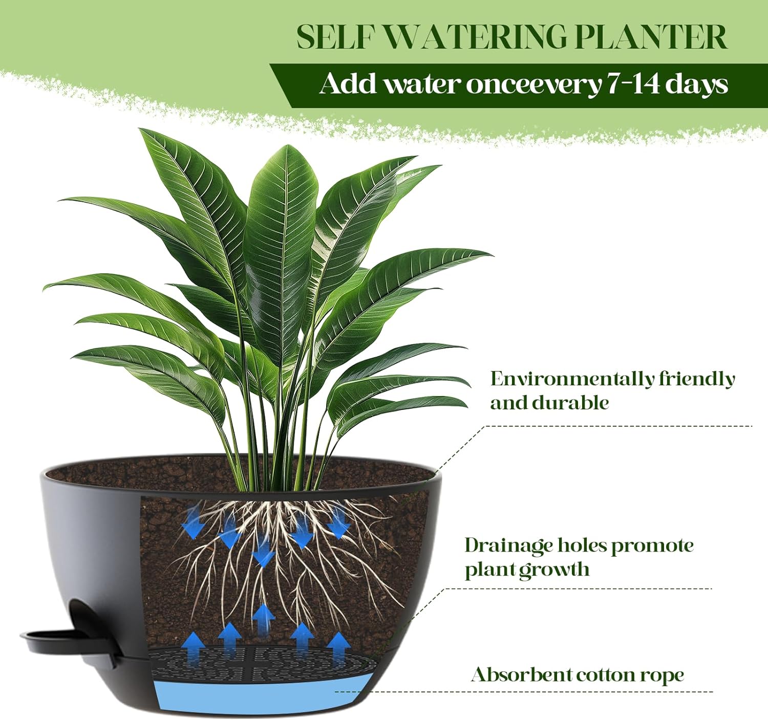 - ✅ 2 Large Self-Watering Planters: Double the value! Includes two 10-inch wide plastic hanging planters with built-in self-watering reservoirs to reduce the need for frequent watering and keep plants healthier.