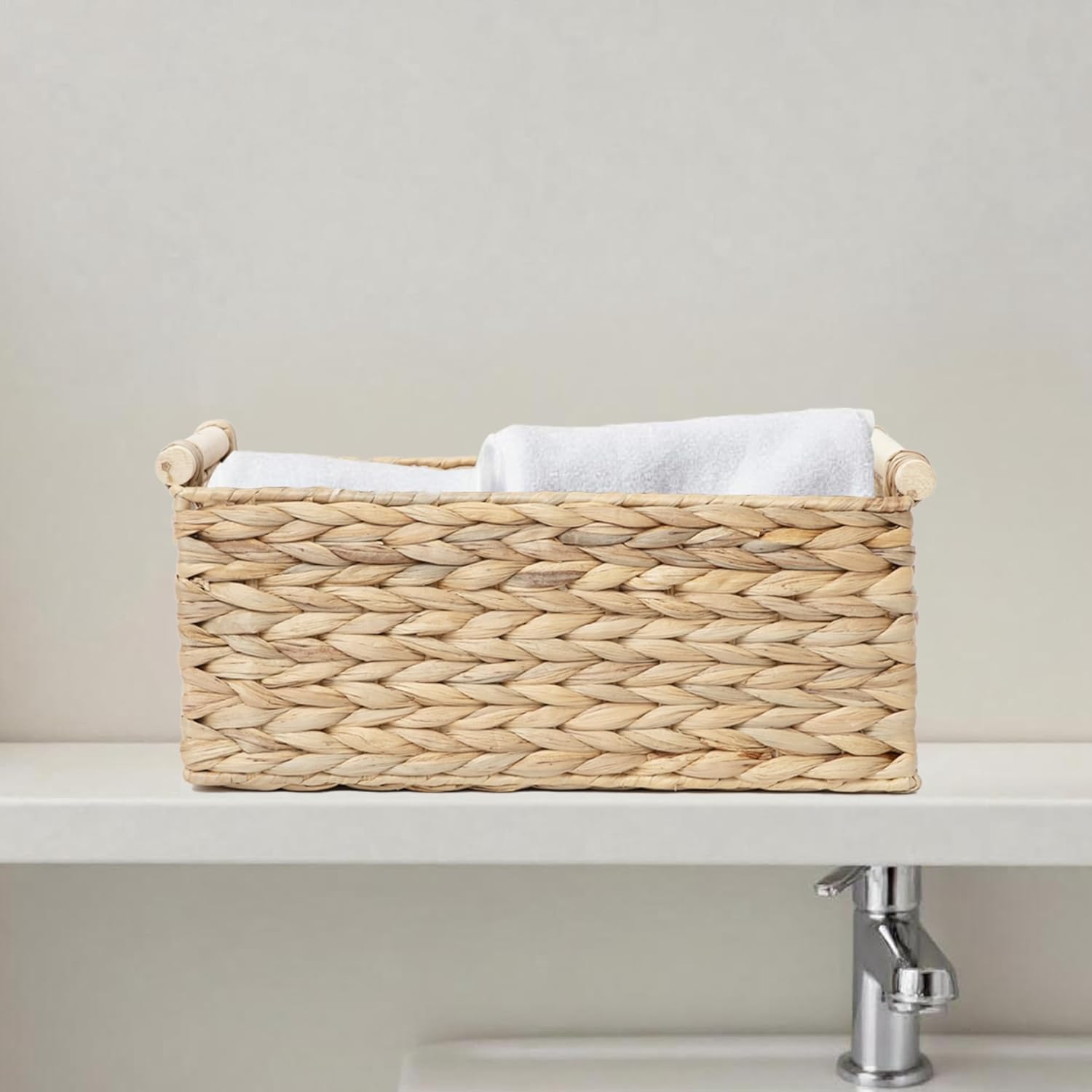 - Convenient Wooden Handles:Equipped with robust wooden handles, this basket with handle facilitates easy carrying and moving. Whether you need to transfer stored items or quickly retrieve something inside, the handles make it effortless, combining practicality with a rustic appearance.