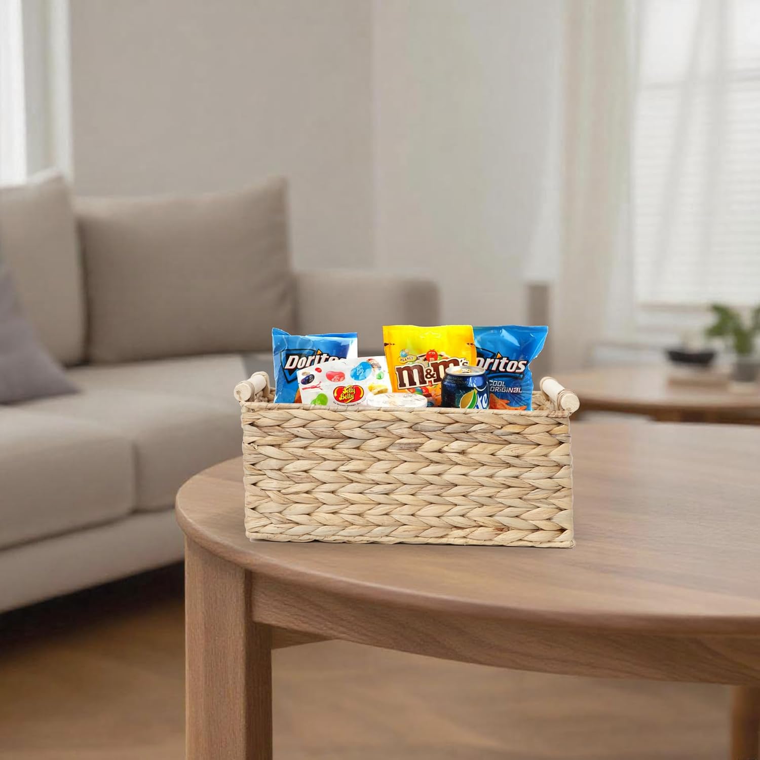 - Convenient Wooden Handles:Equipped with robust wooden handles, this basket with handle facilitates easy carrying and moving. Whether you need to transfer stored items or quickly retrieve something inside, the handles make it effortless, combining practicality with a rustic appearance.