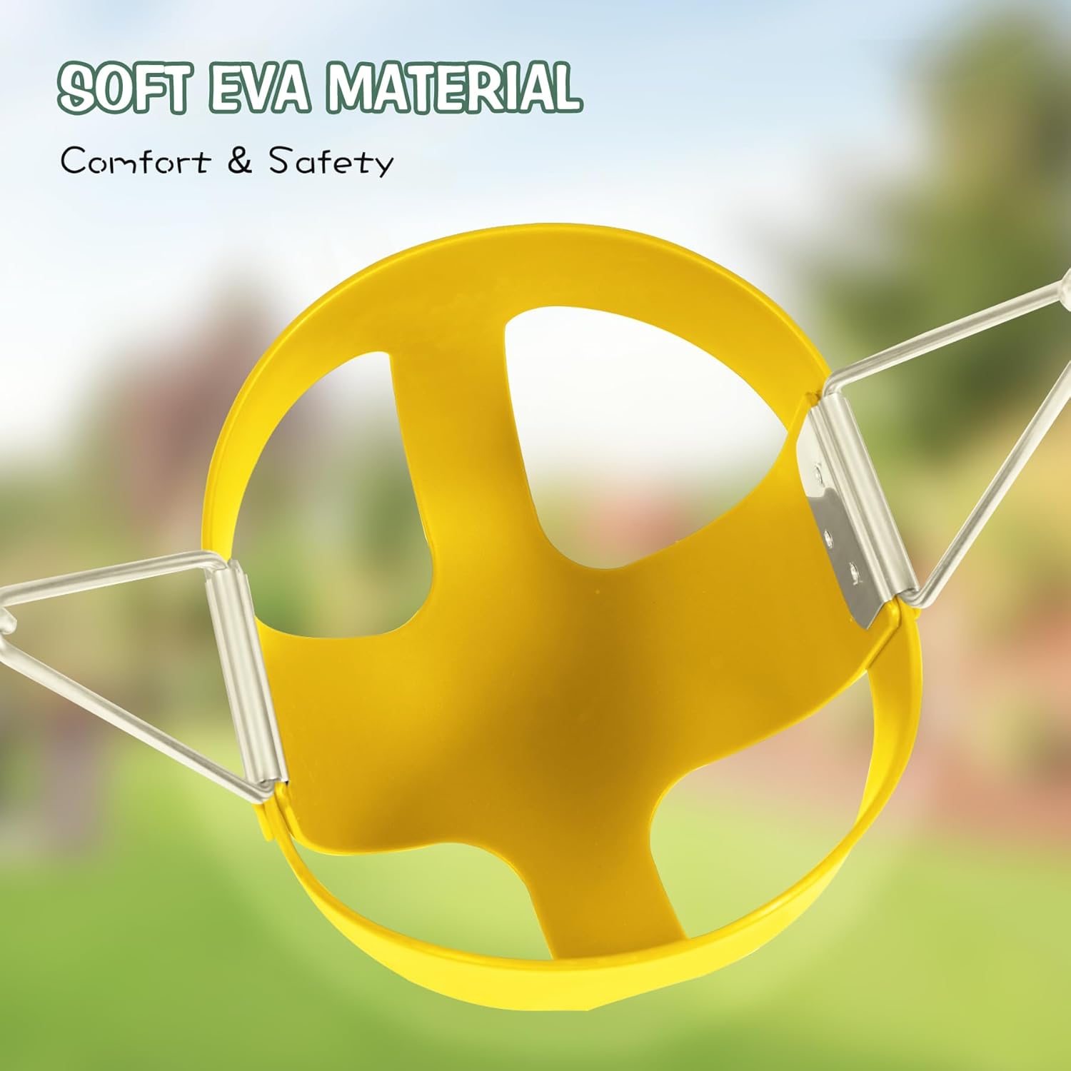 - Premium Quality and Security: Our baby swing is meticulously crafted from premium EVA and stainless steel, ensuring a skin-friendly, anti-corrosive, and sturdy construction. With its high back design and multi-fixing feature, it guarantees hours of fun and years of play. The maximum load capacity can reach up to 330lbs/150kg.