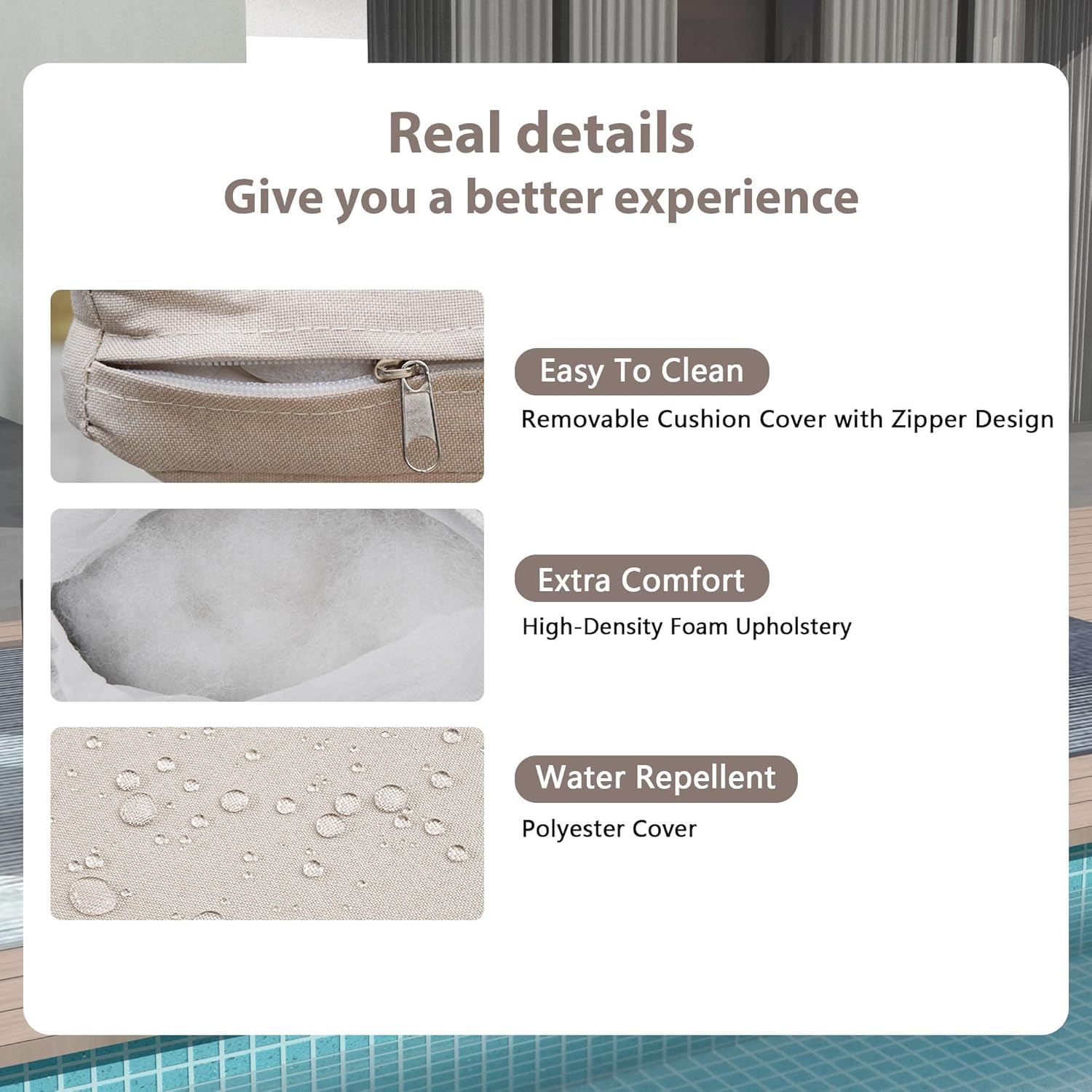 - ăModular Design & Deep Seatingă Freely arrange arm/armless chairs to fit any space (patio, poolside, garden). Extra-thick cushions with removable covers for easy cleaning