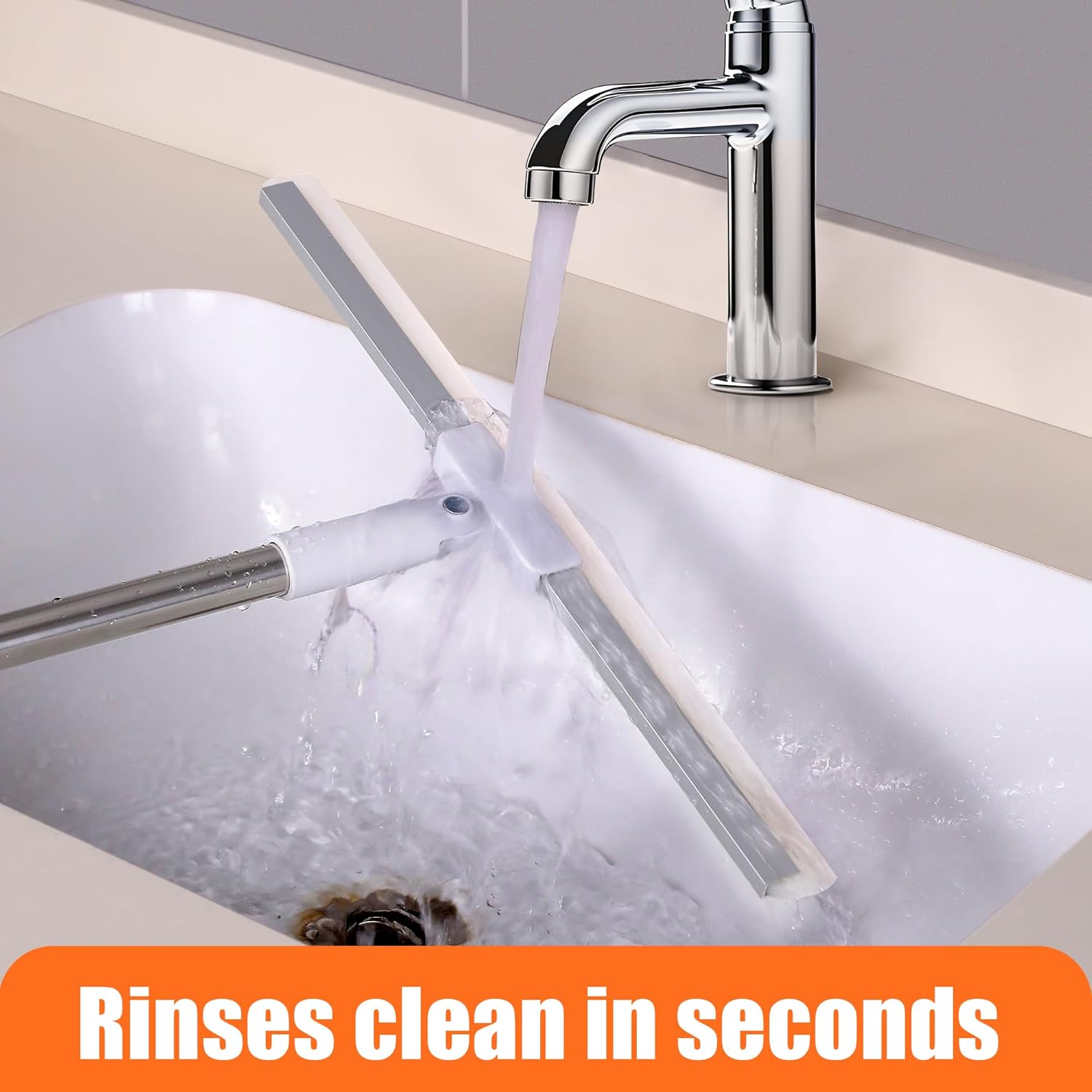 - 【Premium Silicone Blade – Streak-Free Shine】 High-quality silicone blade with sturdy support glides smoothly over glass, porcelain, marble, and hardwood floors. Effortlessly removes water, soap scum, foam, and pet hair, leaving surfaces clean and streak-free in seconds. Easy to rinse and ready for the next use—fast, efficient, and frustration-free cleaning for your home.