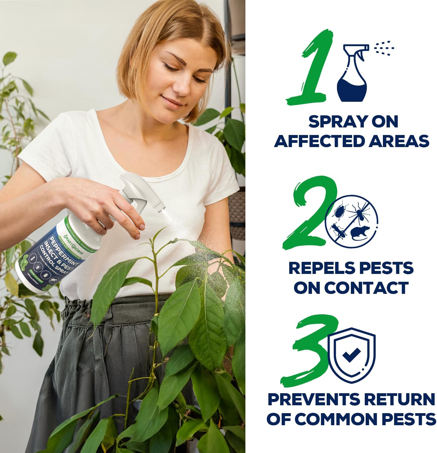 All Natural Peppermint Oil Insect & Pest Control Spray Repels Mice, Spiders, Ants, for Home, Indoor, Outdoor, Garden Maximum Strength Smart Grower Ready to Use 128 FL OZ