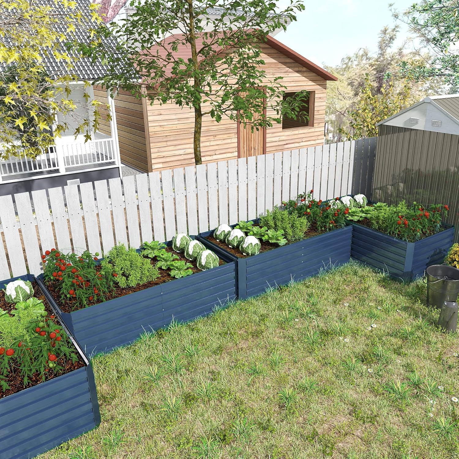 - Durable Galvanized Raised Garden Bed: Made of stable thickened galvanized steel sheet, which can be exposed to sunlight, rain, snow and other environments for a long time, equipped with two ground stakes and three stabilizing bars. Keep your garden beds looking their best for years to come.