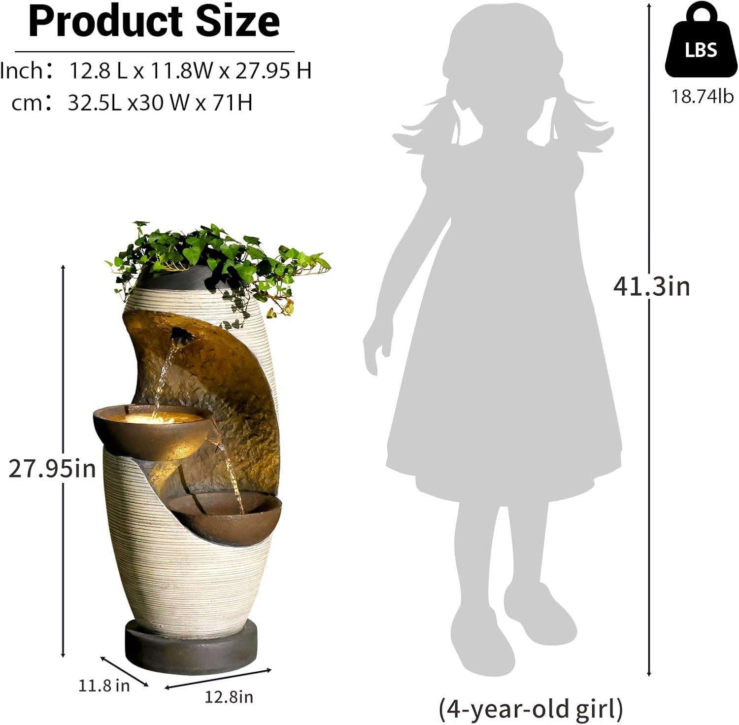 27.95''H Outdoor Garden Water Fountain, 2-Tier Bowl Shaped Floor - Standing Waterfall Fountain Indoor with LED Lights for Yard, Garden, Patio,Backyard & Home Decor