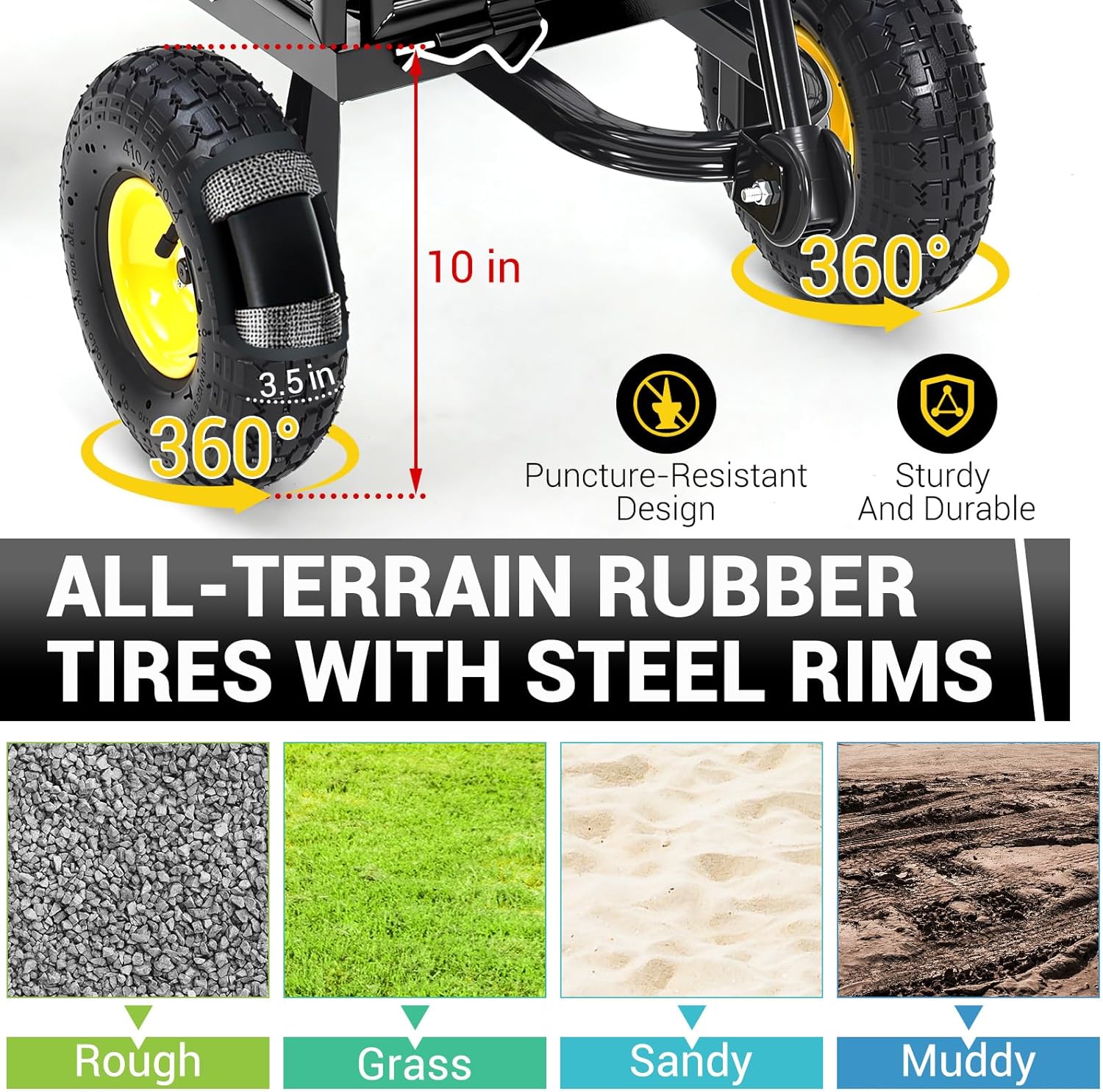 Heavy Duty Steel Garden Cart, 880LBS Pullable Metal Garden Wagon with 10" Wheels, 180° Rotating Handle and Removable Sides for Outdoor, Farm, Yard, Beach