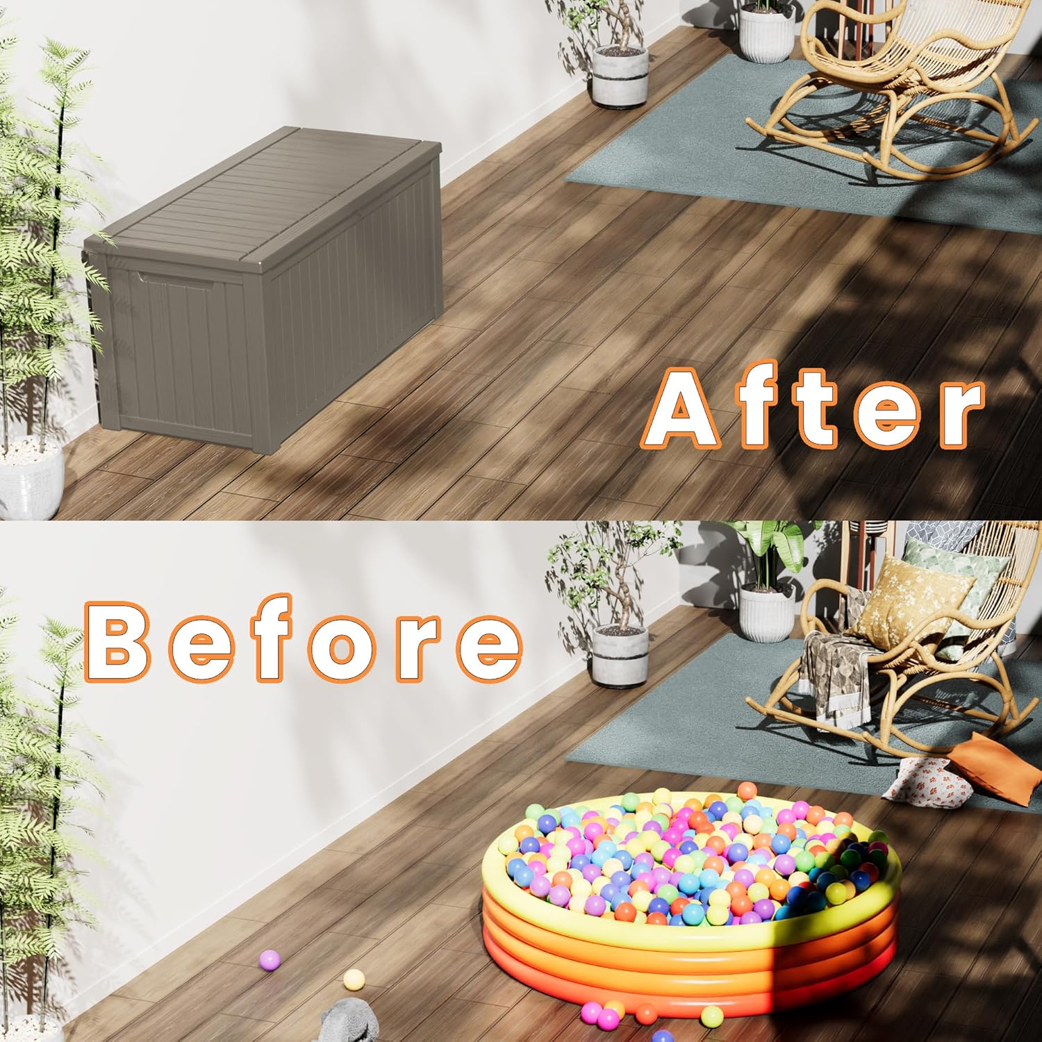 - Resin Material: The deck storage box made of resin material has excellent ultraviolet protection and waterproof ability, is suitable for all-weather outdoor environment, and has a service life of many years