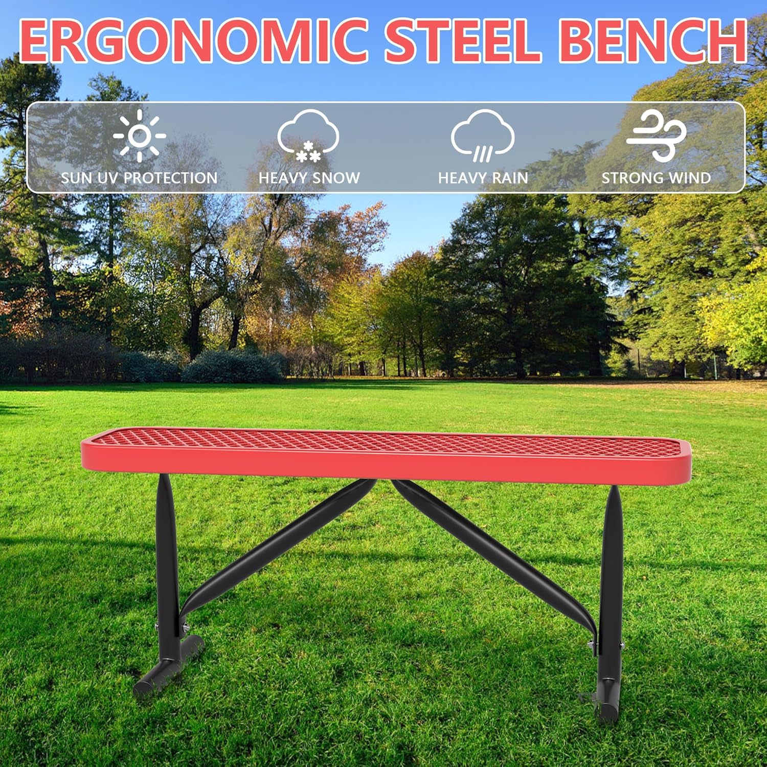 48" L Outdoor Steel Flat Bench, Heavy Duty Metal Park Bench for Outside, Expanded Metal, Commercial Benches Mesh Bench for Shopping Mall, Store, Lawn, Park, Patio, Deck, Garden (Red, 4FT)