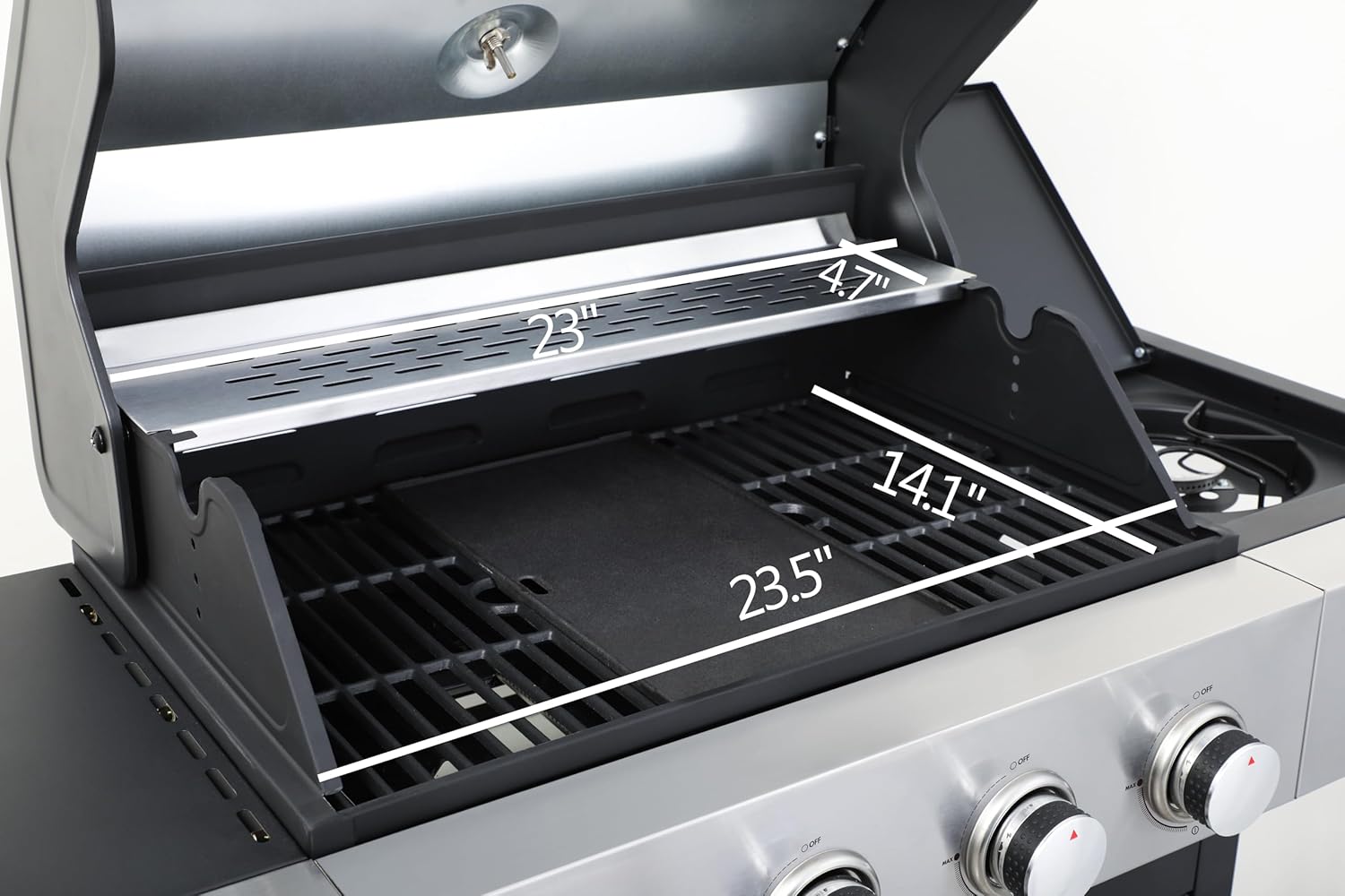 - 🔥 Massive 46,790 BTU Output – Four primary burners + side burner for full meal prep.