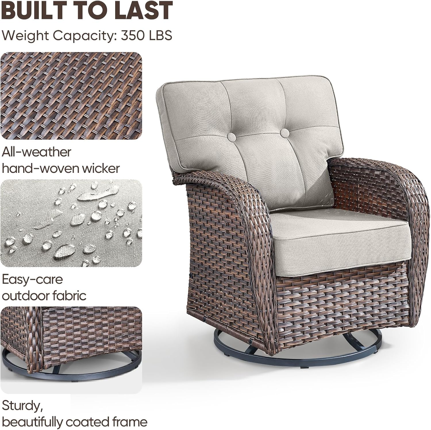 - 【Rocking Chair with 360° Rotation】: This balcony chair set features smooth 360° rotation and forward/backward sliding functionality. This design allows you to easily adjust your seating position, providing greater convenience and relaxation for outdoor activities, letting you fully enjoy the beauty of your backyard. With a gentle push, the rocking chair glides smoothly forward and backward, offering an unparalleled comfortable experience while reading, resting, or enjoying tea with friends