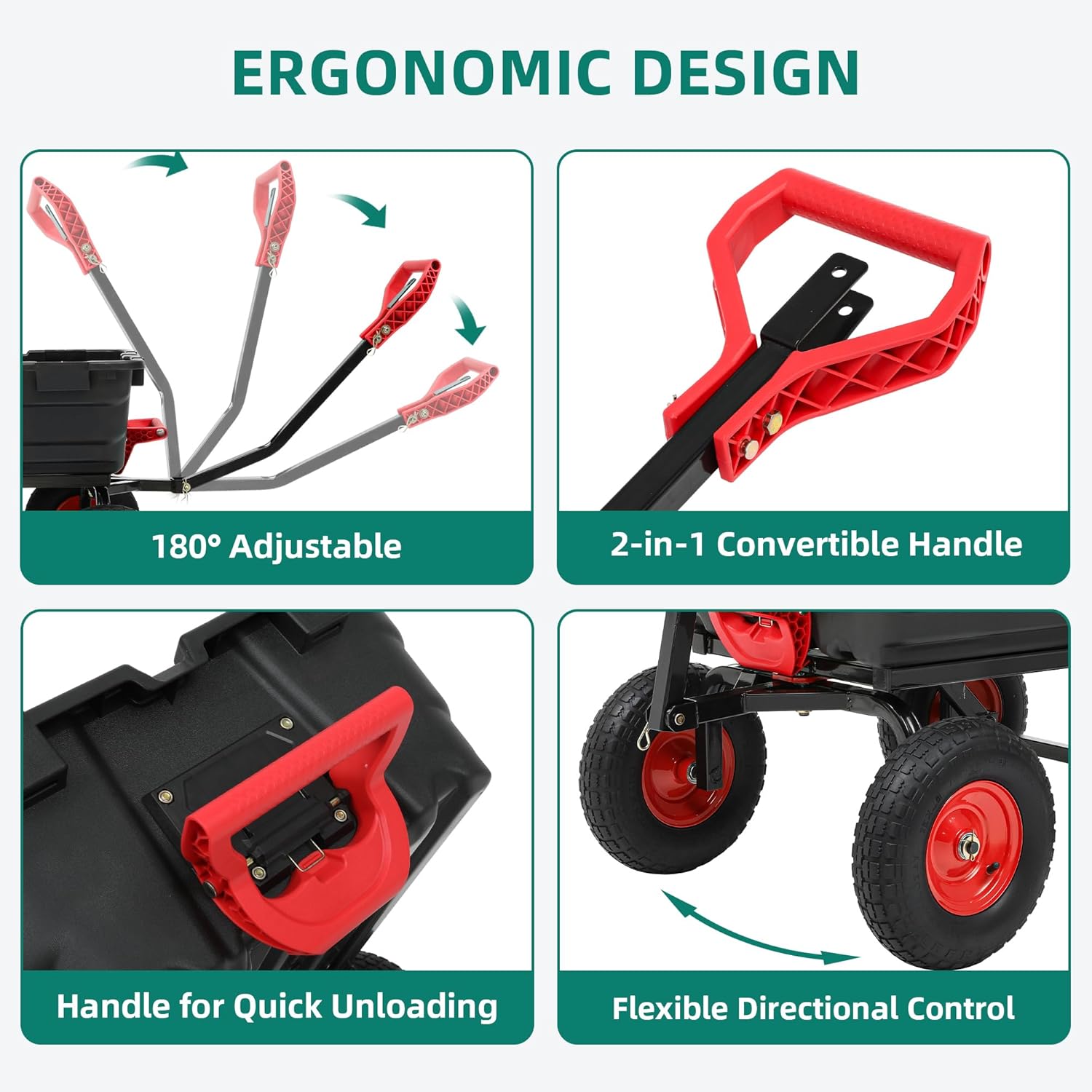 - Effortless Unloading Design: Experience rapid unloading with the quick release system on this garden dump cart; simply disassemble the bottom frame or utilize the 180° adjustable handle for fast, easy dumping, dramatically doubling your work efficiency.