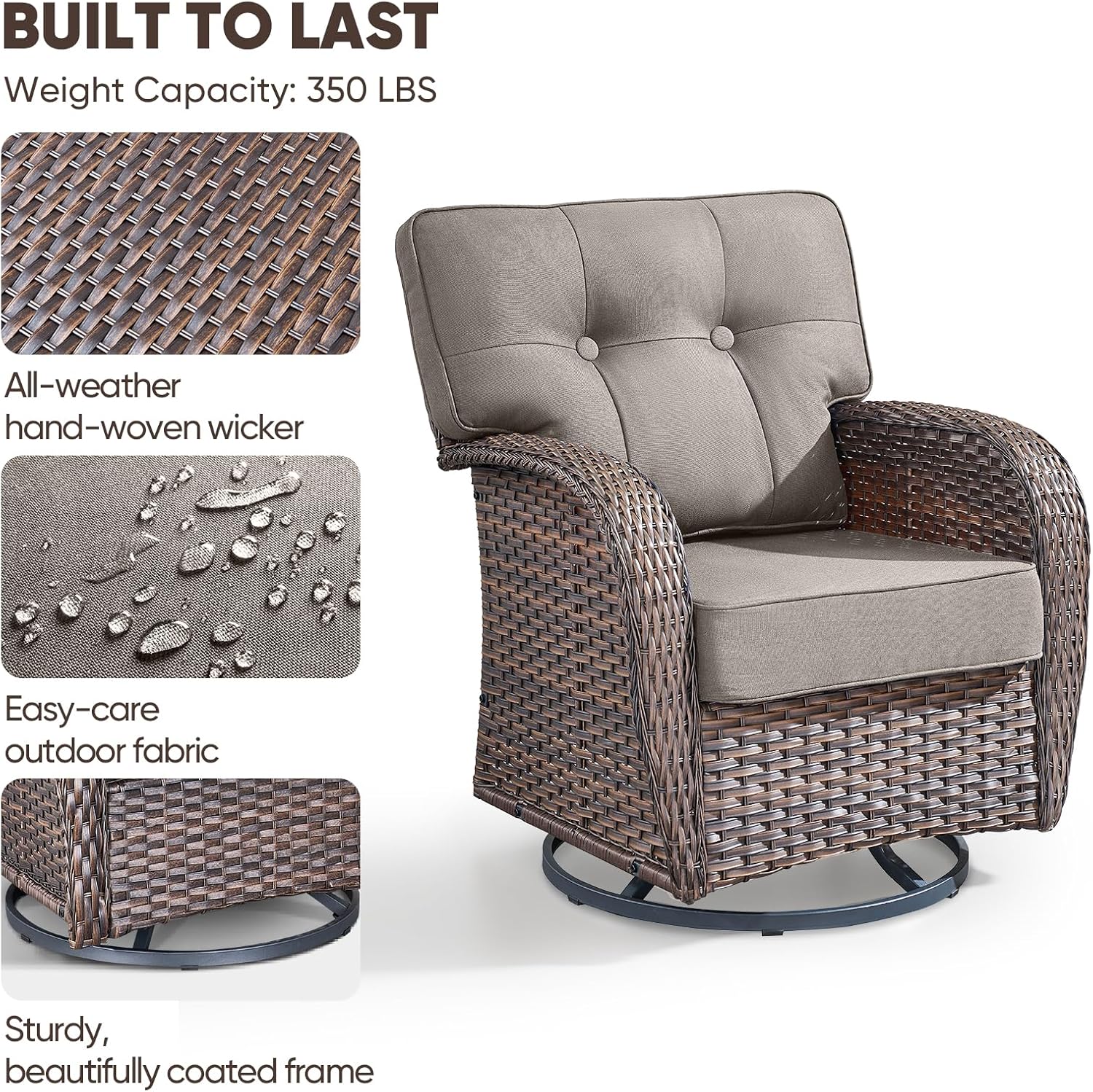 - 【Rocking Chair with 360° Rotation】: This balcony chair set features smooth 360° rotation and forward/backward sliding functionality. This design allows you to easily adjust your seating position, providing greater convenience and relaxation for outdoor activities, letting you fully enjoy the beauty of your backyard. With a gentle push, the rocking chair glides smoothly forward and backward, offering an unparalleled comfortable experience while reading, resting, or enjoying tea with friends
