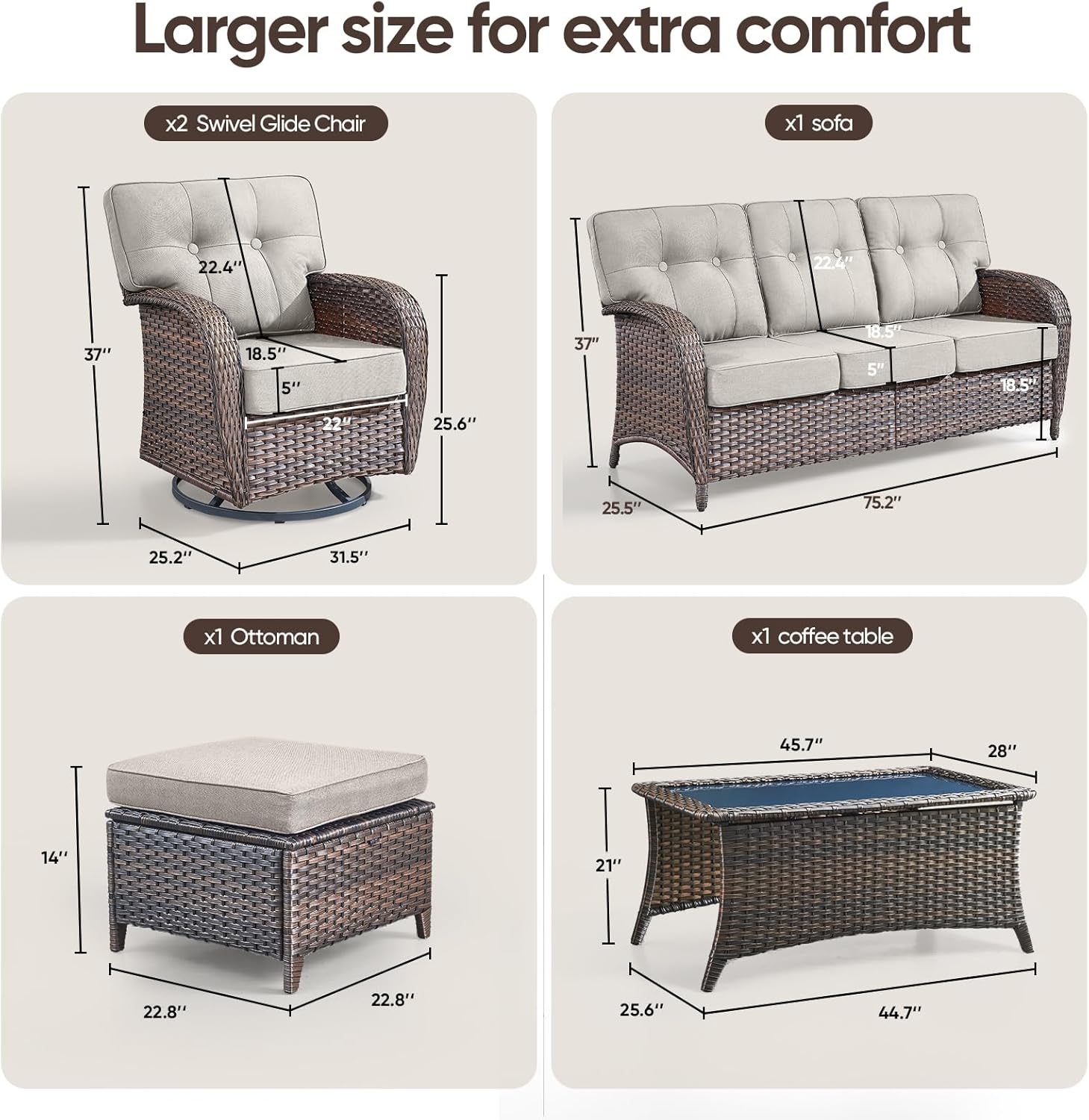 - Material PE Rattan : Item Weight 43.7 Pounds