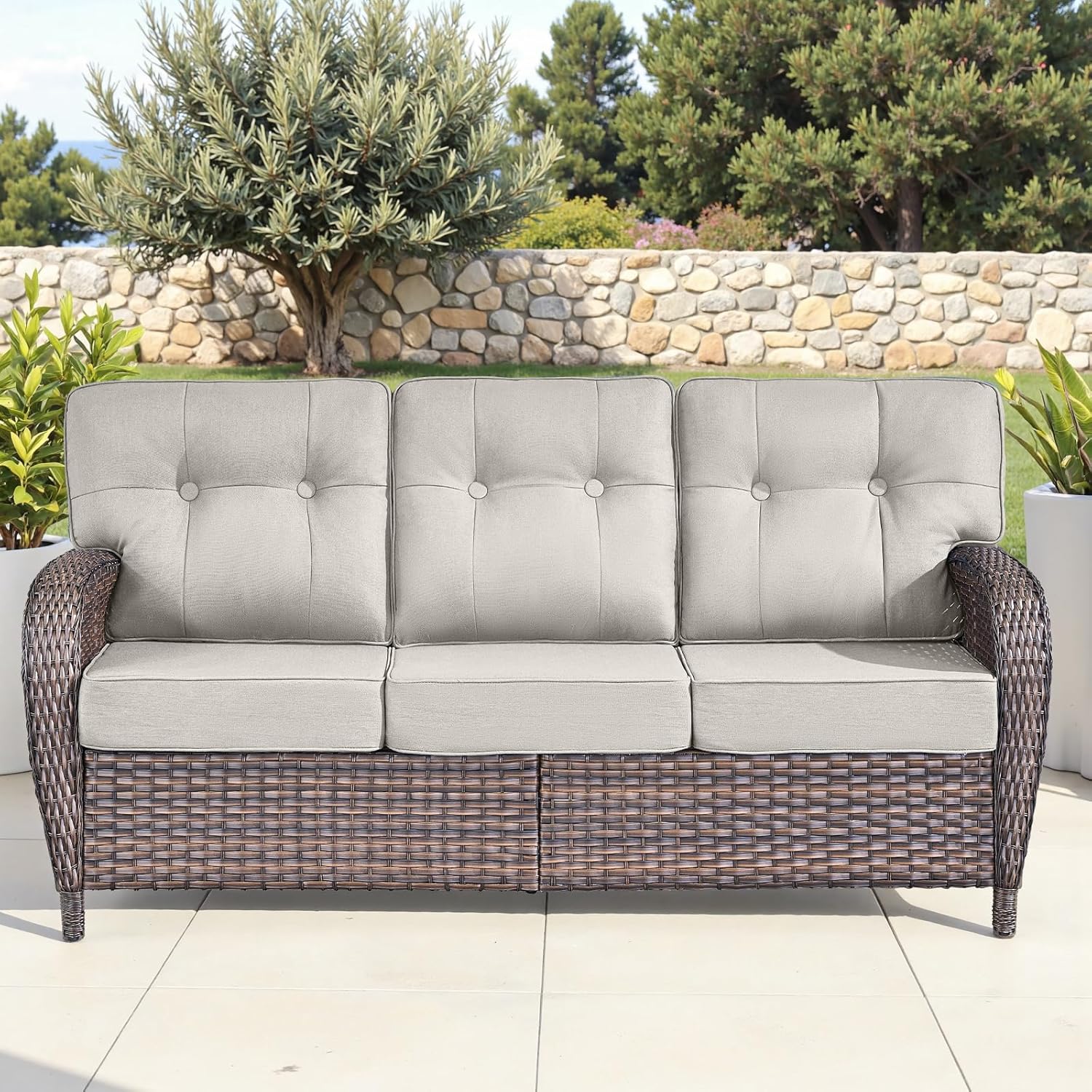 - Color : Brown Rattan | Beige Cushions