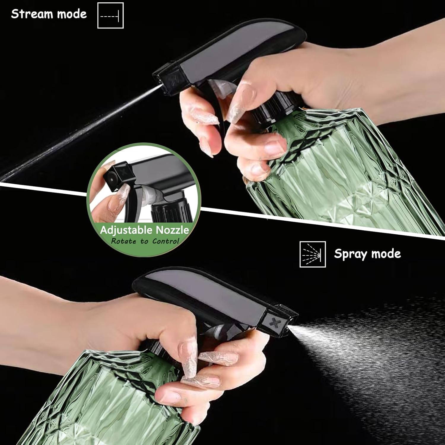 - [360° Adjustable Nozzle for Versatile Spraying] The adjustable 360° nozzle enables effortless control over spray patterns: switch smoothly between fine mist, steady stream, or shut-off.you can choose the sprayer mode accordingly by twisting the nozzle.