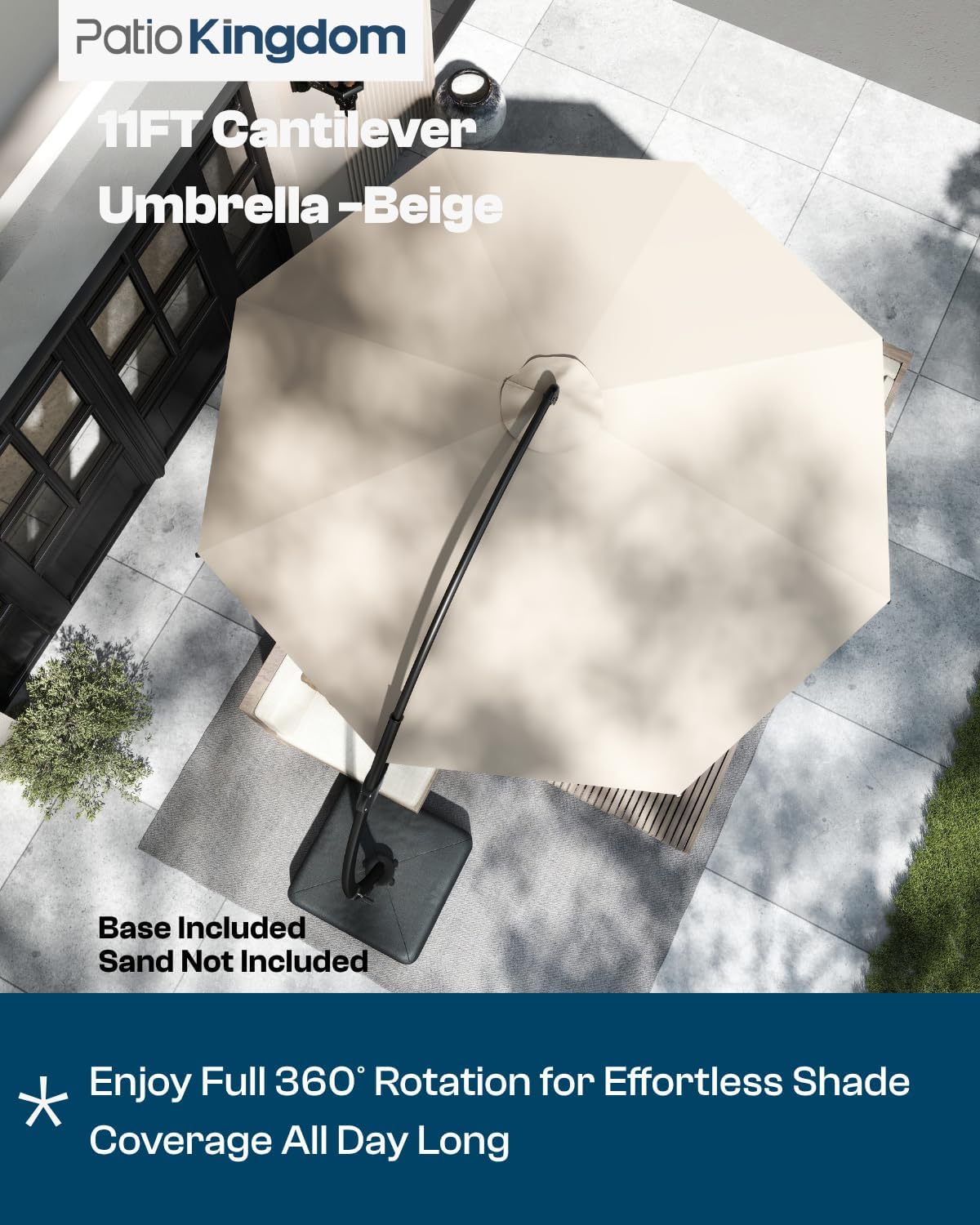 3-Piece Outdoor Bar Set with Beige 11FT Cantilever Umbrella, HDPE Tall Balcony Adirondack Chairs and Table, Outdoor Bar Stools for Patio (Navy Blue)
