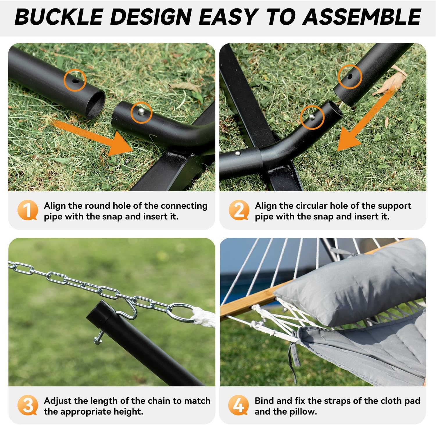 - 【With Carrying Bag & Adjustable Height】:This 2-person hammock with stand features a height-adjustable steel chain for the perfect fit. Designed with portability in mind, it comes with a convenient carry bag—take it anywhere, anytime, and relax on the go.