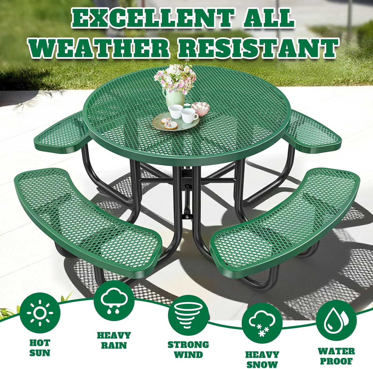 Heavy-Duty Park Bench or Table for Outside - Black Coated Outdoor Furniture Steel Bench, Commercial-Grade Outdoor Benches Weatherproof for Park, Patio, Porch (Green, 46” (Rd. Table))
