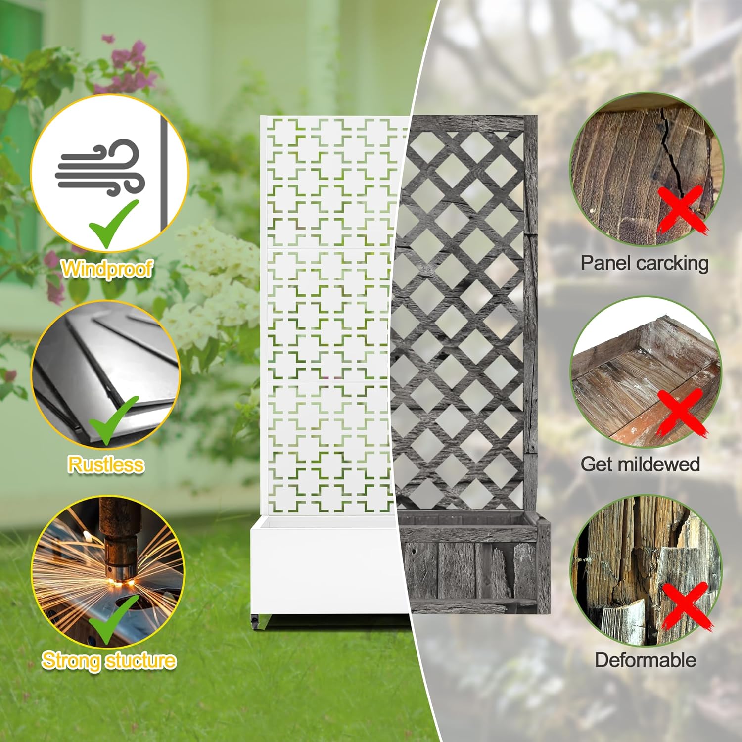 - 【Space-Saving Design】The combination of the planter box and trellis saves space while offering an attractive garden bed. This space-efficient solution is ideal for gardening enthusiasts facing space constraints, allowing them to cultivate beautiful gardens even in limited areas.