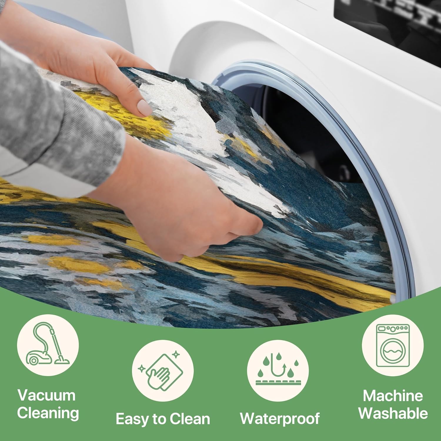 GENIMO Indoor Outdoor Area Rug 8' X 10' Waterproof, Washable Patio Rug Non Shedding, Easy Cleaning Floral Outdoor Carpet for Living Room, Bedroom, Dining Room, Balcony, Deck, RV, Backyard, Blue Yellow