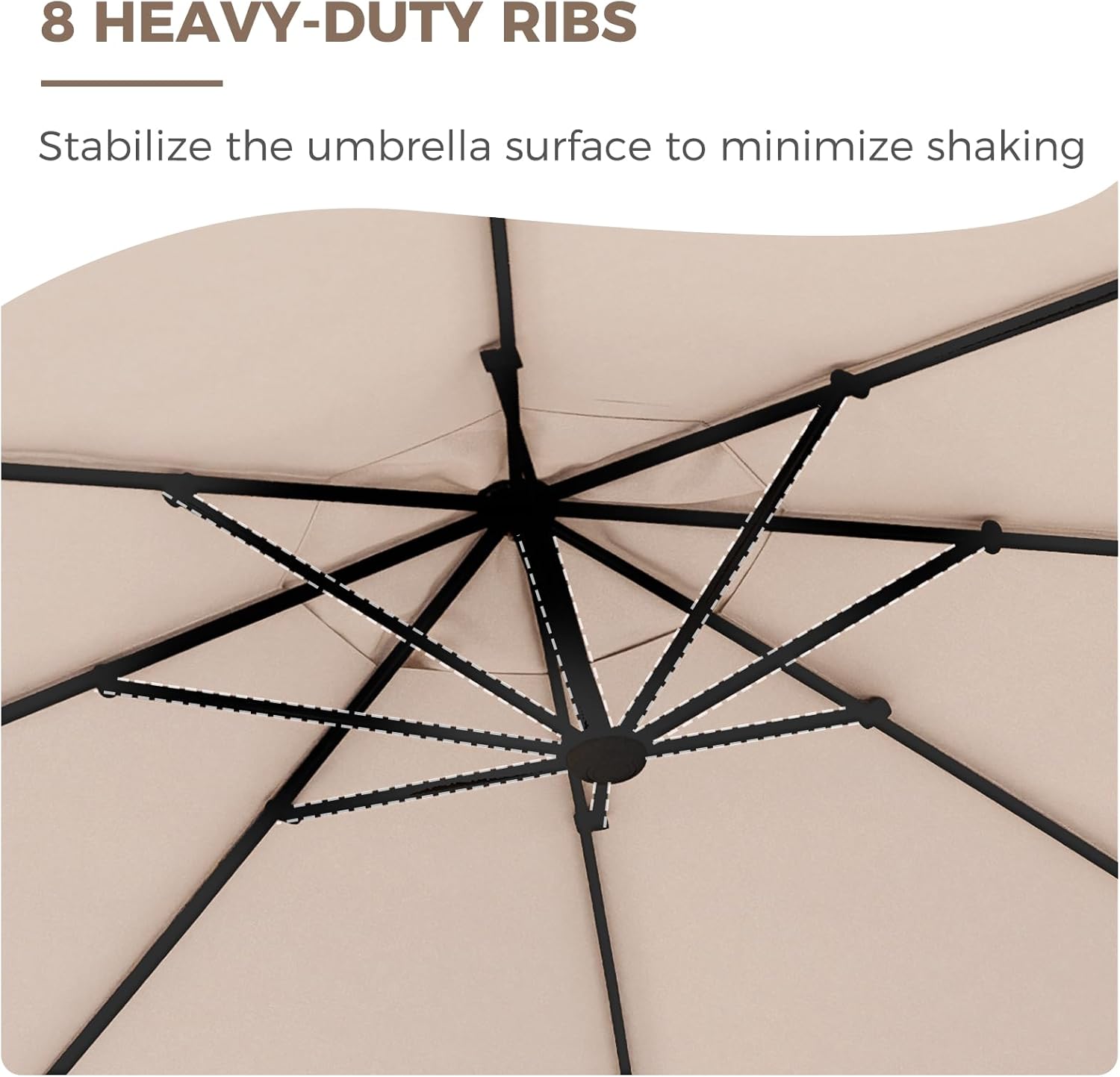 - STURDY STEEL RIBS: Enjoy unparalleled stability with our premium offset umbrella, boasting 8 heavy-duty ribs that ensure exceptional stability even in windy conditions