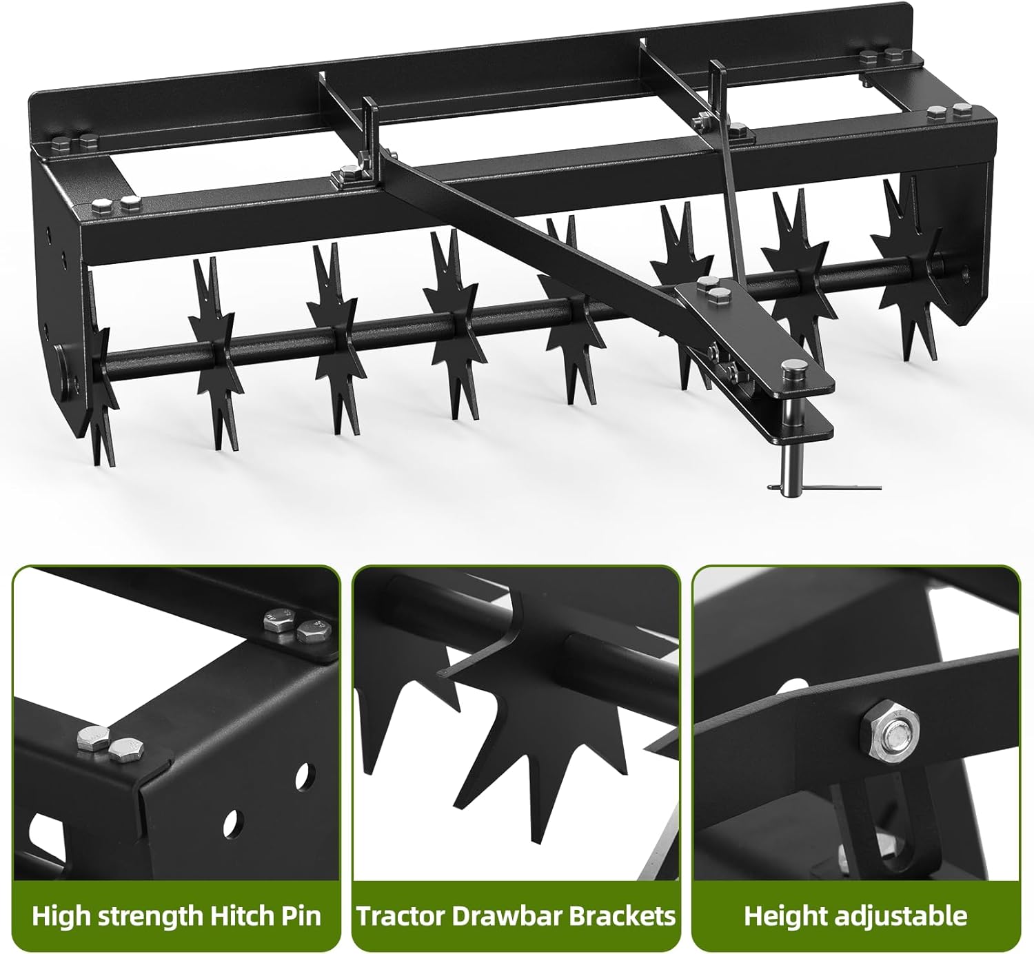 - [Smooth Steering] The rolling lawn aerator features independently rotating spike disks for smooth operation and fewer passes, even during turns. This tow-behind spike aerator makes lawn maintenance efficient and hassle-free