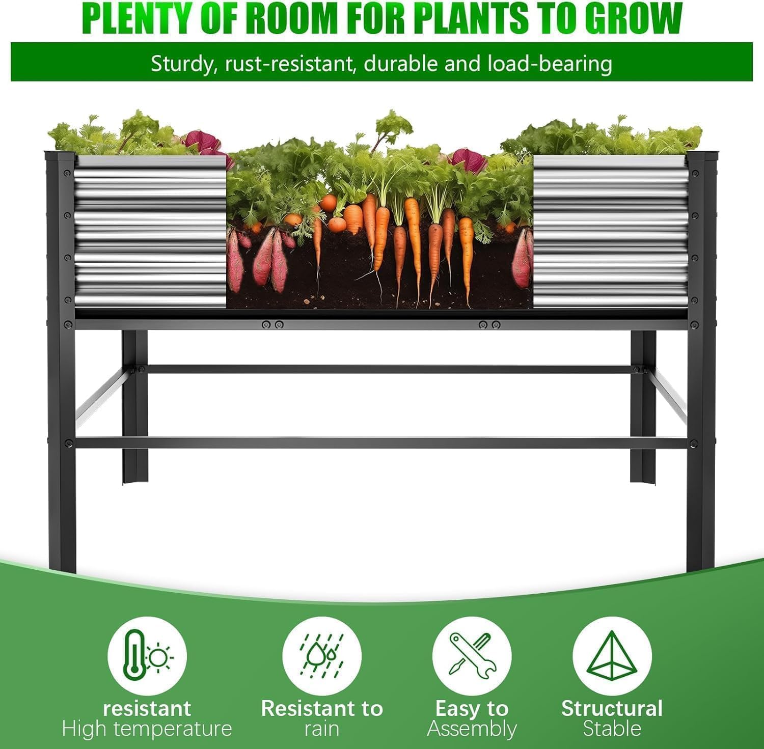 - 【Distinctive Design】-Outdoor elevated garden beds, our custom design style features galvanized sheet metal on the top, a stainless steel frame on the middle base, and the lower four corners are made of heavy-duty steel with a black powder-coated finish,This combination exceeds the lifespan of wooden products and ensures excellent rust resistance to keep the garden bed in the best condition for a long time.