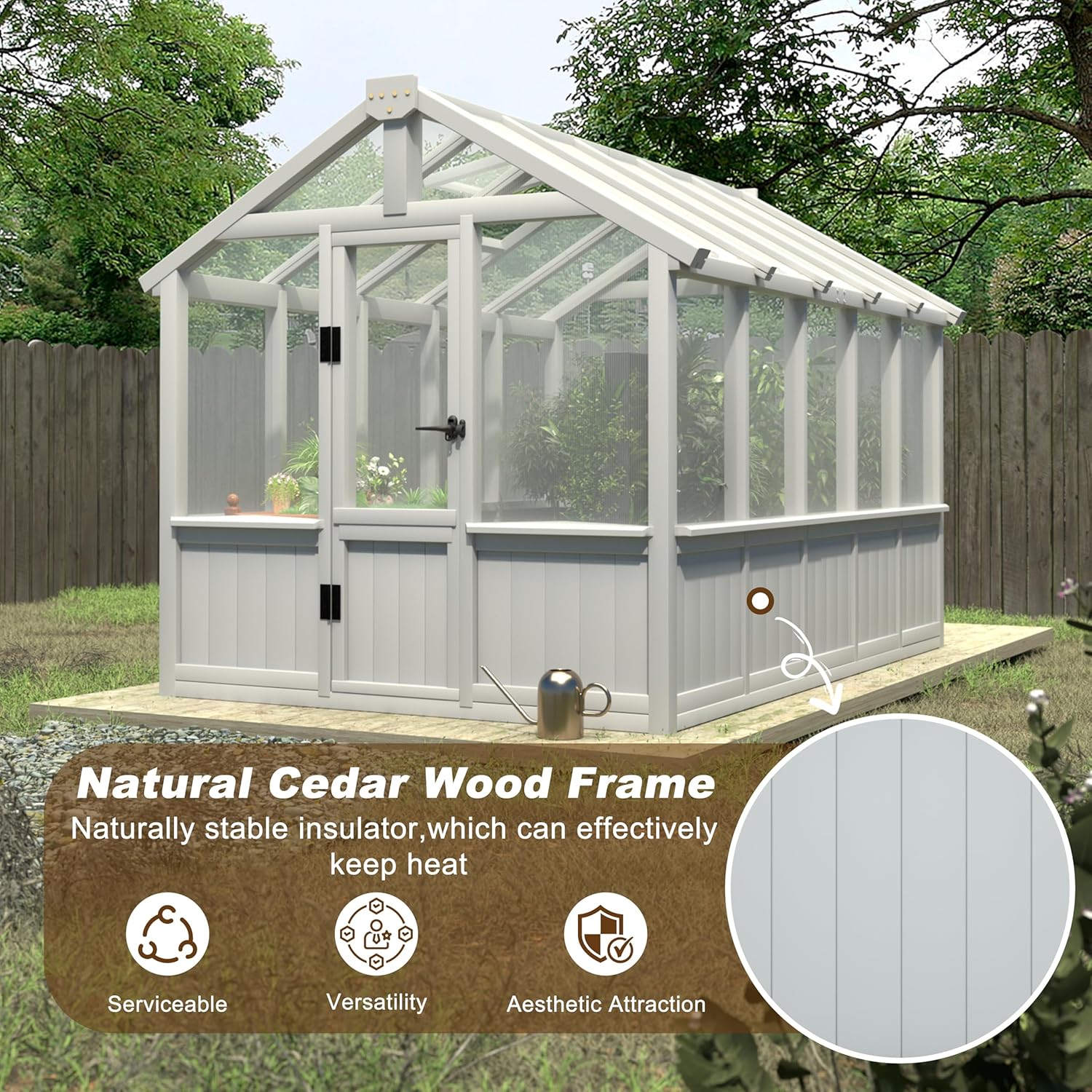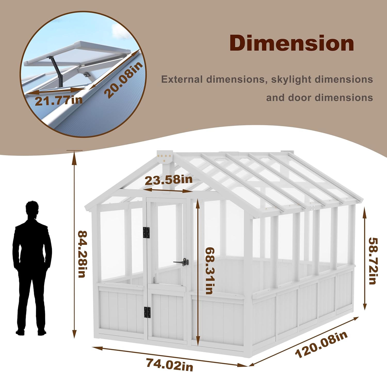 6x10 FT Green House for Outdoor, Thicken Polycarbonate Panel Wooden Walk-in Greenhouse Kit with Lockable Door and Adjustable Roof Vent, Backyard Garden, White