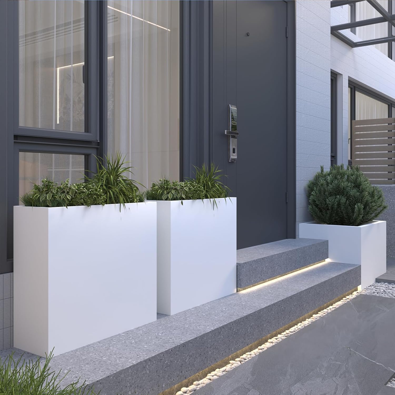 Galvanized Steel Metallic Heavy Planter for Outdoor Plants Metal Outdoor Planter Spliced Flower Box with Partitions for Outside,Indoor,Garden (White, 32 * 15 * 24)
