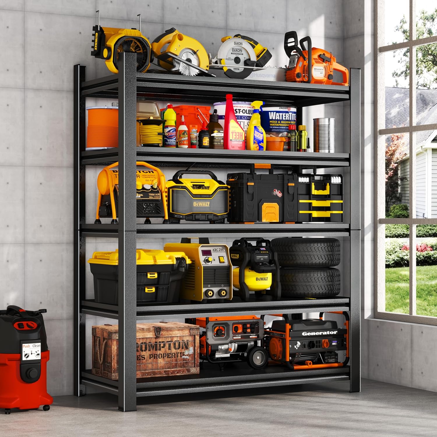 78''H Garage Shelving Heavy Duty Garage Storage Shelves, 3000 LBS Adjustable 5 Tier Industrial Shelving Unit, Metal Utility Shelf for Basement, Warehouse and Workshop (78''Hx36''Wx16''D, Black)