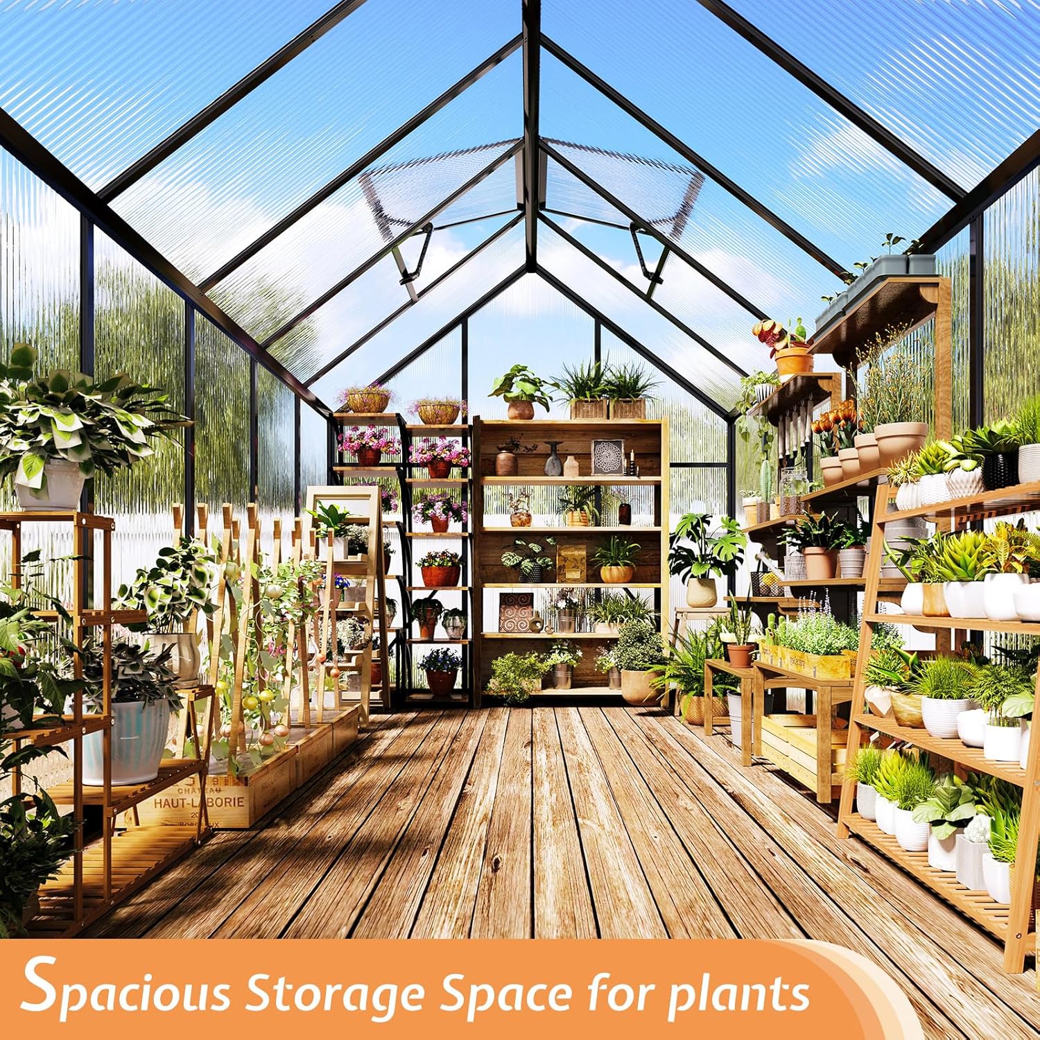 Amerlife 6x10x6.3 FT Ft Polycarbonate Greenhouse for Outdoors, Walk-in Design with Aluminum Frame, 2 Windows and Swing Door, Heavy-Duty Greenhouse Construction for Garden, Black